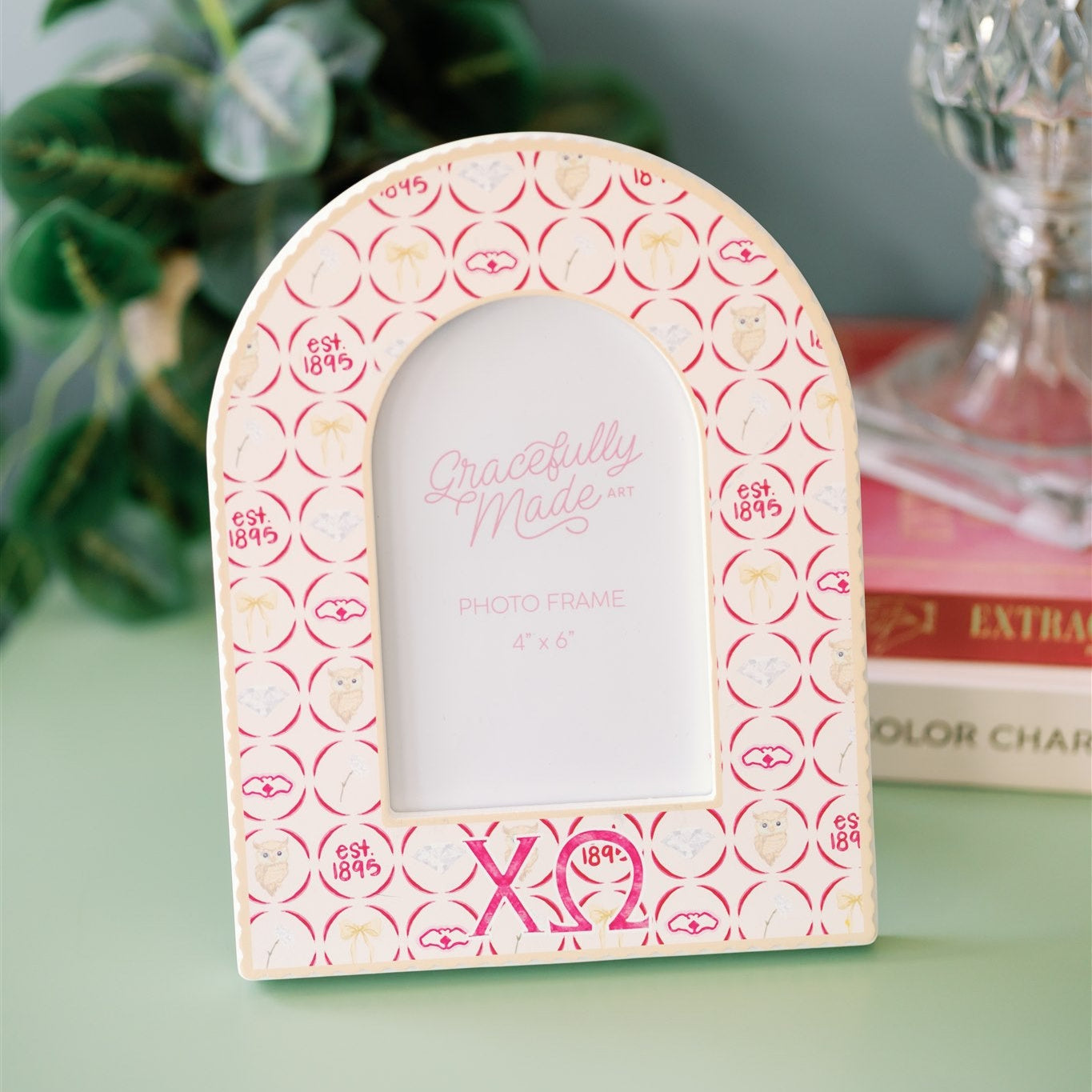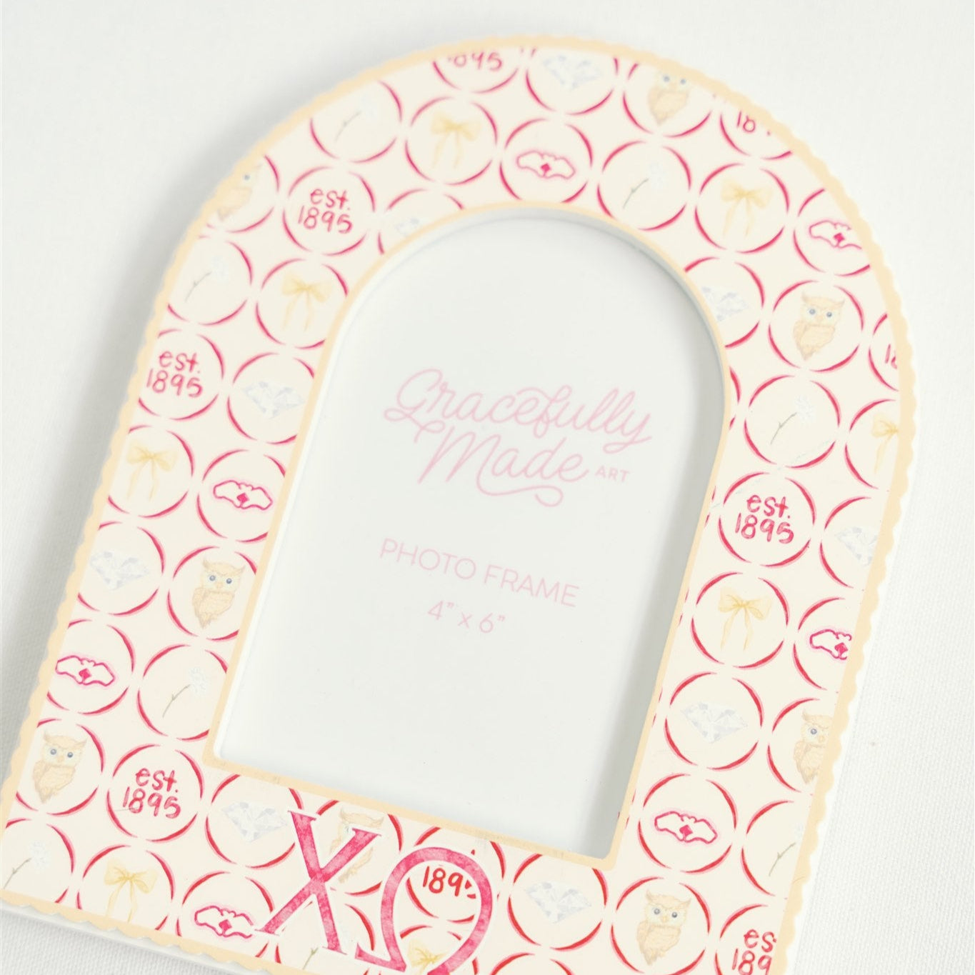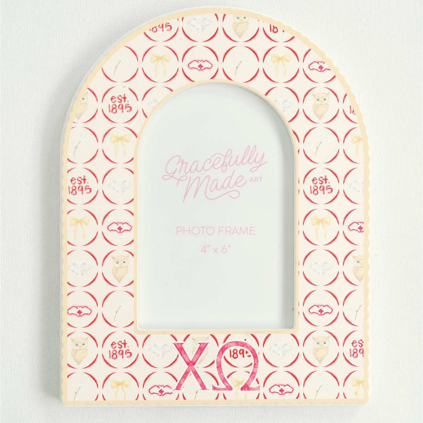 Add a pop of Chi O spirit to your space with this charming Chi Omega picture frame! Featuring symbols like the owl, diamond, and “est. 1895,” it’s the perfect blend of fun and meaningful. A great gift for your big, little, or yourself—this frame is a sweet way to showcase your favorite sisterhood memories.