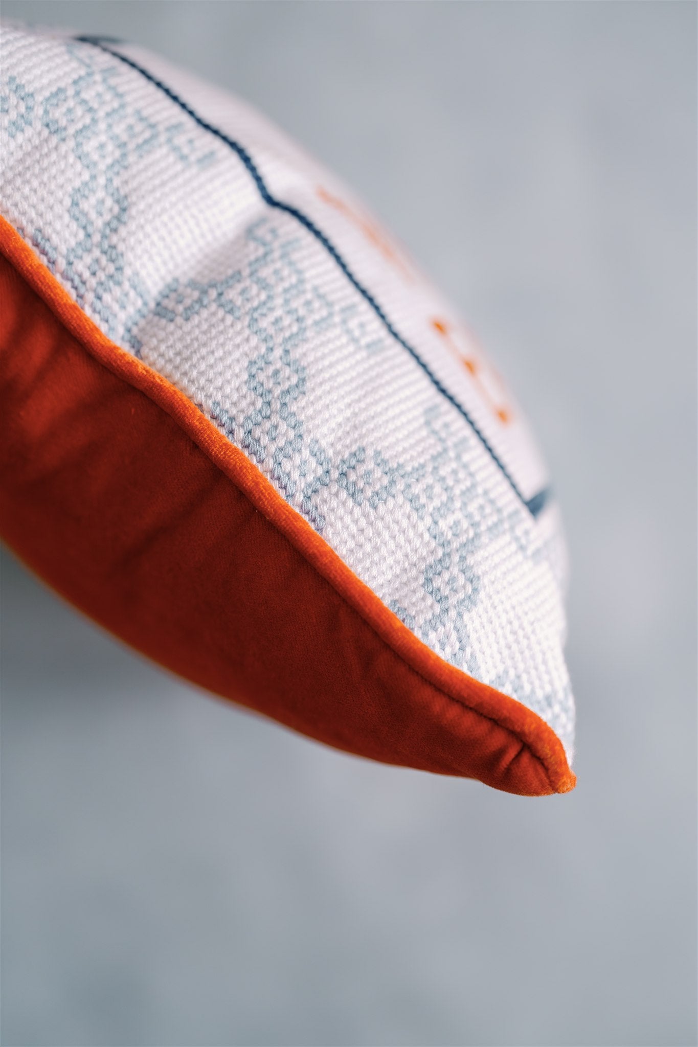 Our Eagle Pillow is a cozy nod to Auburn pride, featuring the classic saying “Home Is Where the Eagle Flies” in bold orange and blue stitching. Measuring 18 inches long and 12 inches tall, this charming accent piece adds the perfect touch of school spirit to any sofa, chair, or dorm room. With its detailed needlepoint design and orange piping, it’s a timeless reminder that there’s no place like home on the Plains.