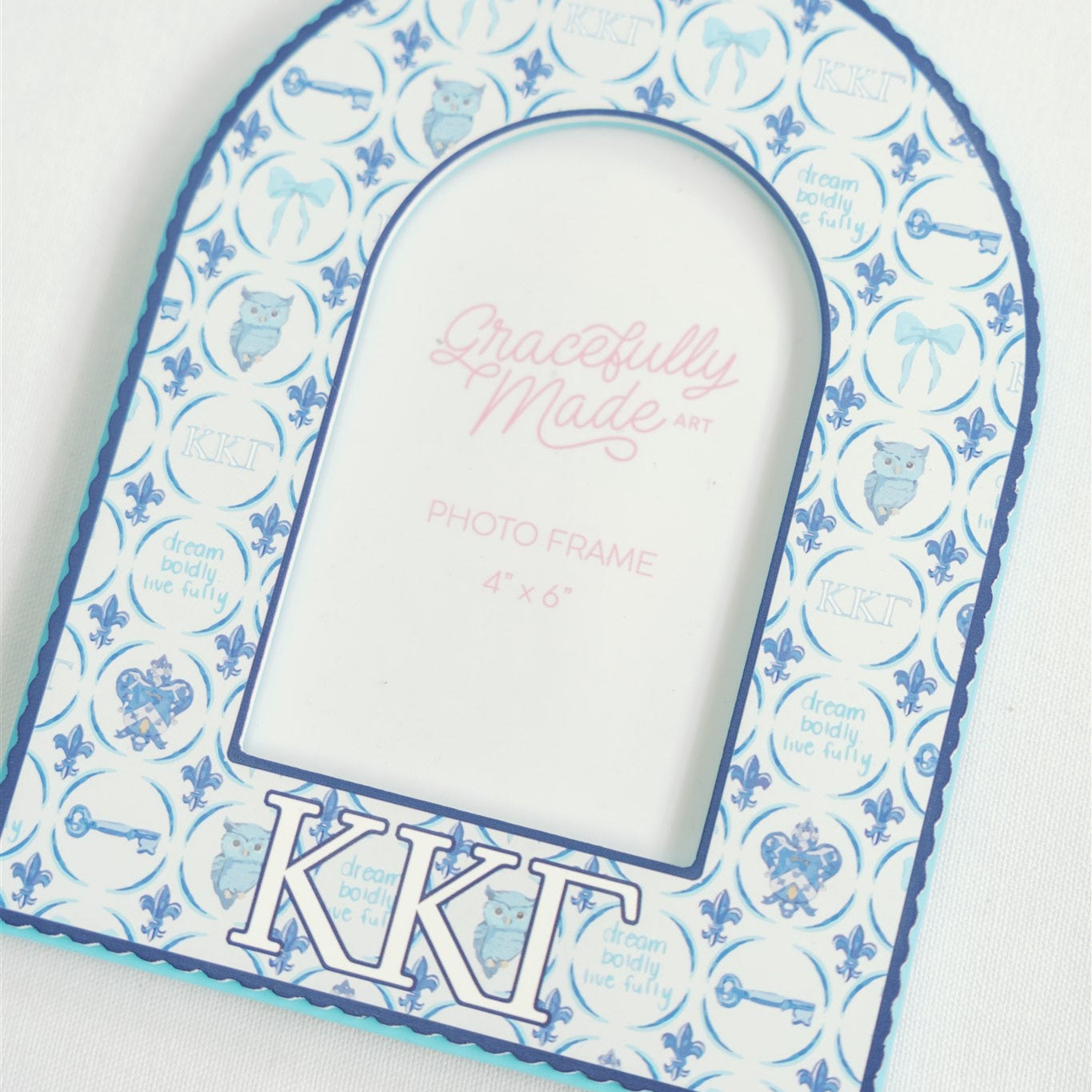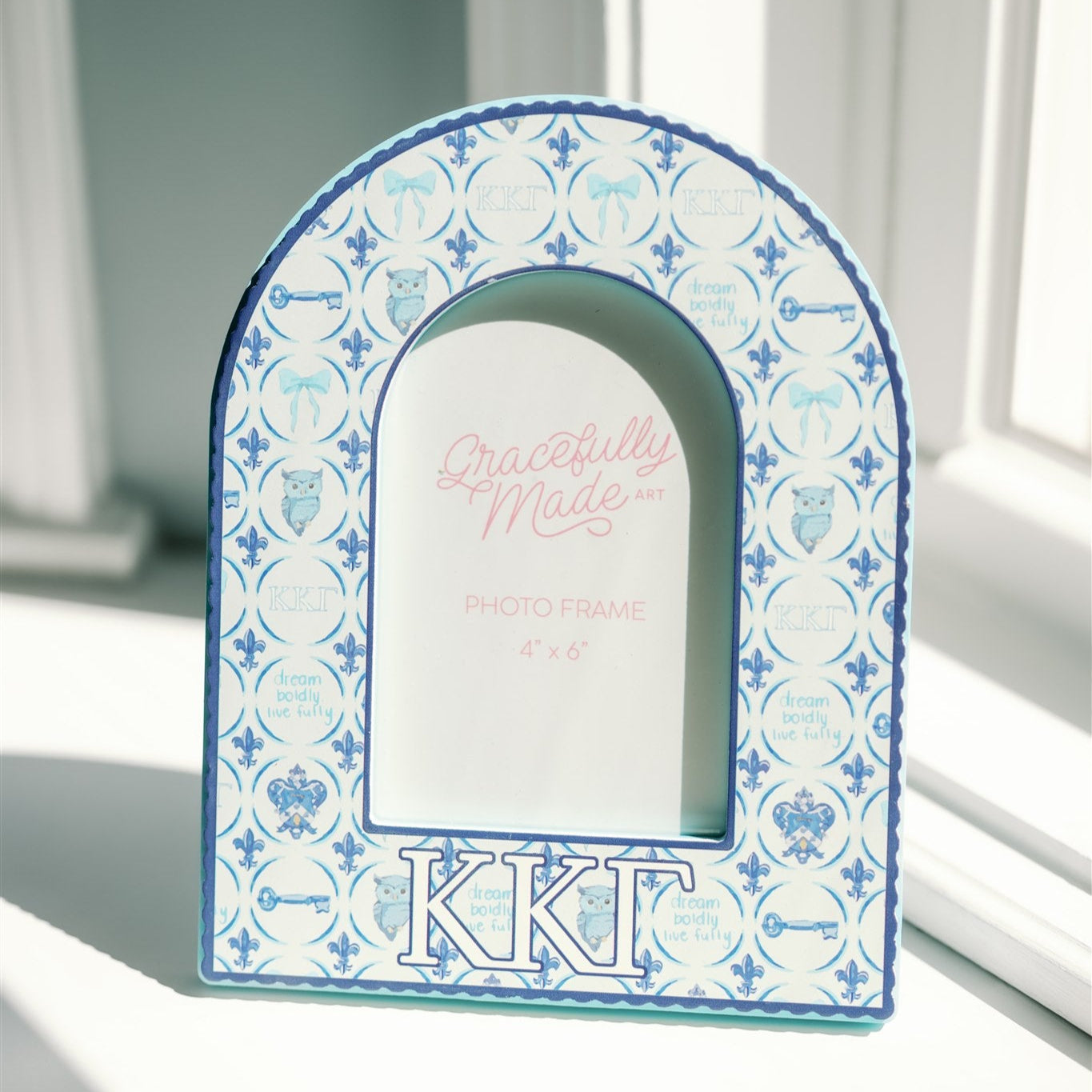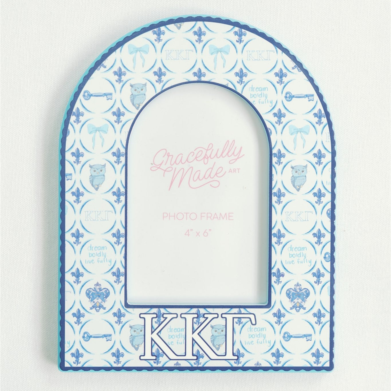 Add a classic touch of sisterhood to your space with our Kappa Kappa Gamma picture frame! Decorated with keys, fleur-de-lis, and the phrase “Dream Boldly. Live Fully.,” this frame is full of Kappa charm. It’s a perfect way to showcase your favorite memories and makes a thoughtful gift for any sister.